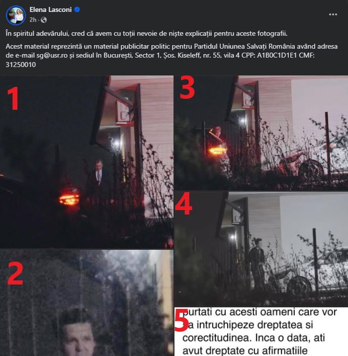 Eu sunt un diletant în domeniul foto, nu sunt vreun jurnalist sau detectiv, însă doresc să ridic niște semne de întrebare cu privire la pozele pe care le-a postat doamna Lasconi pe pagina de facebook a dumneaei.