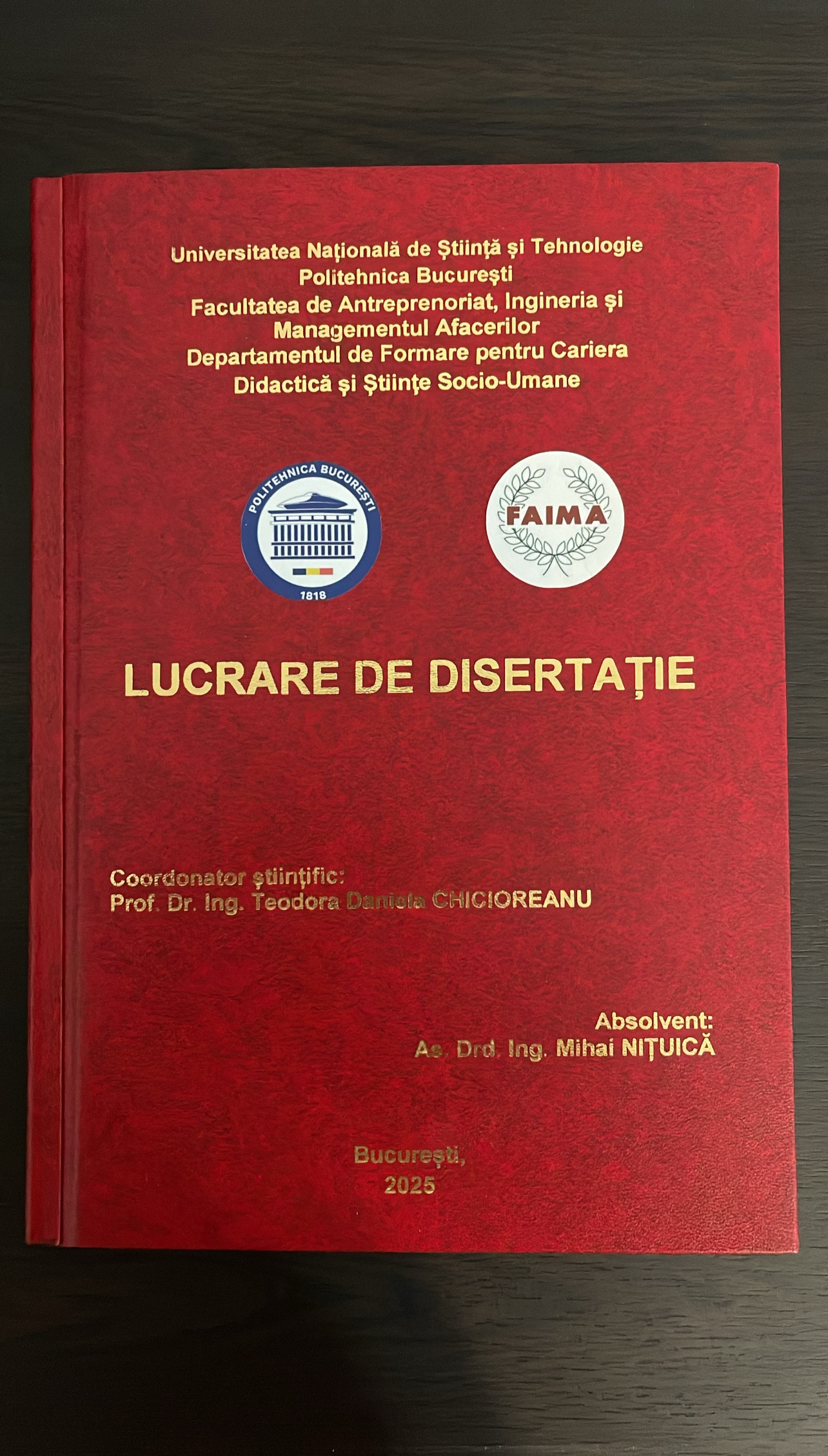 Joi, 26 iunie 2025, am încheiat un capitol pe care l-am început în octombrie 2023. Neștiind că în toamna lui 2023 urma să încep să predau în mediul universitar, însă având acest scop de când mă știu, în iunie 2023 m-am înscris în cadrul programului de studii universitare de masterat Consiliere și leadership în educație și formare profesională din domeniul Științe ale educației, în cadrul Universității Naționale de Știință și Tehnologie Politehnica București. Am făcut asta cu gândul că la un moment dat voi preda în învățământul universitar, astfel vream să fiu pregătit pentru studenții pe care urma să-i am în anul I și care ar dori să renunțe la studii. Pentru a-i ajuta, în caz de nevoie, să-și descopere direcția în care doresc să se îndrepte în ceea ce privește facultatea.